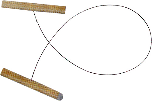 Стоманена корда с дървени дръжки за рязане на глина. Дължина: 52 см