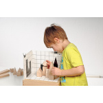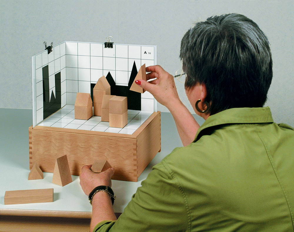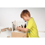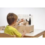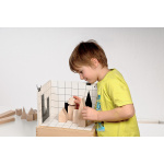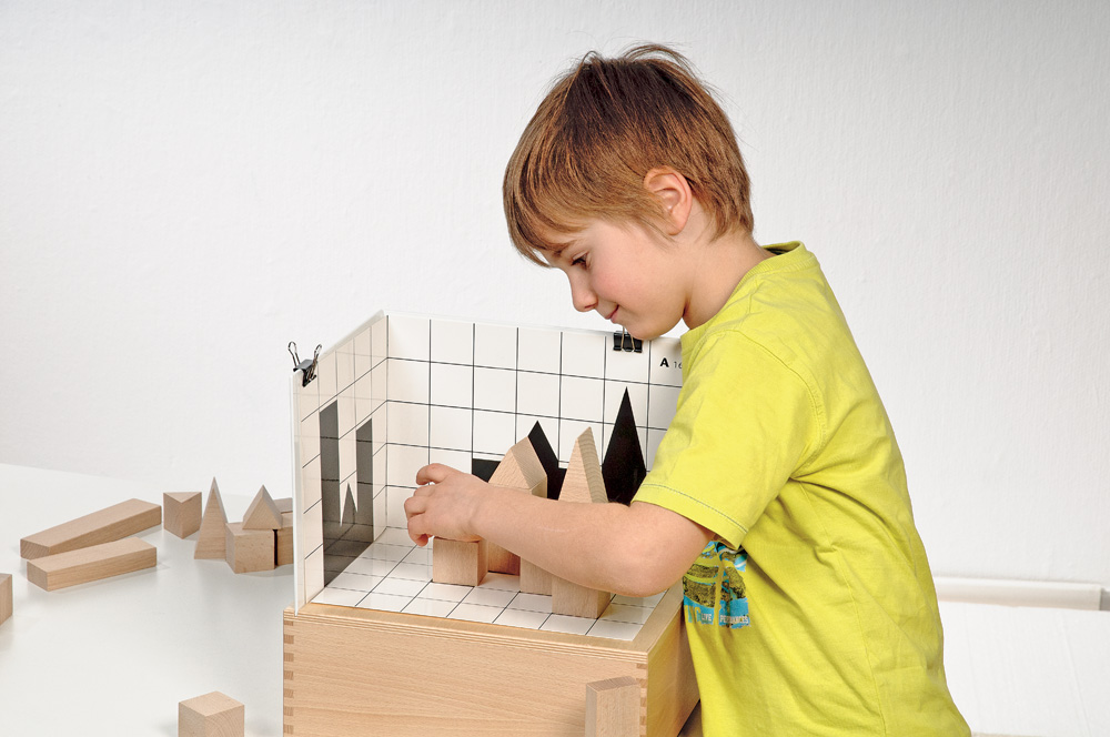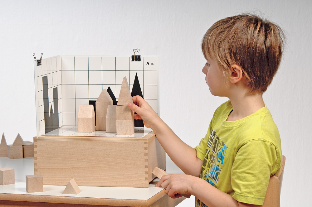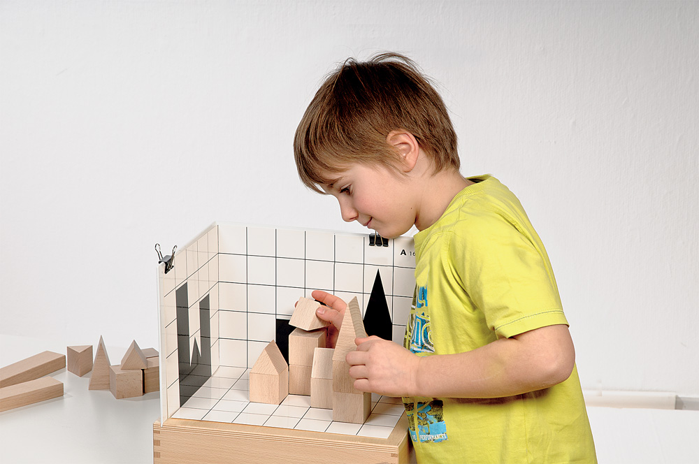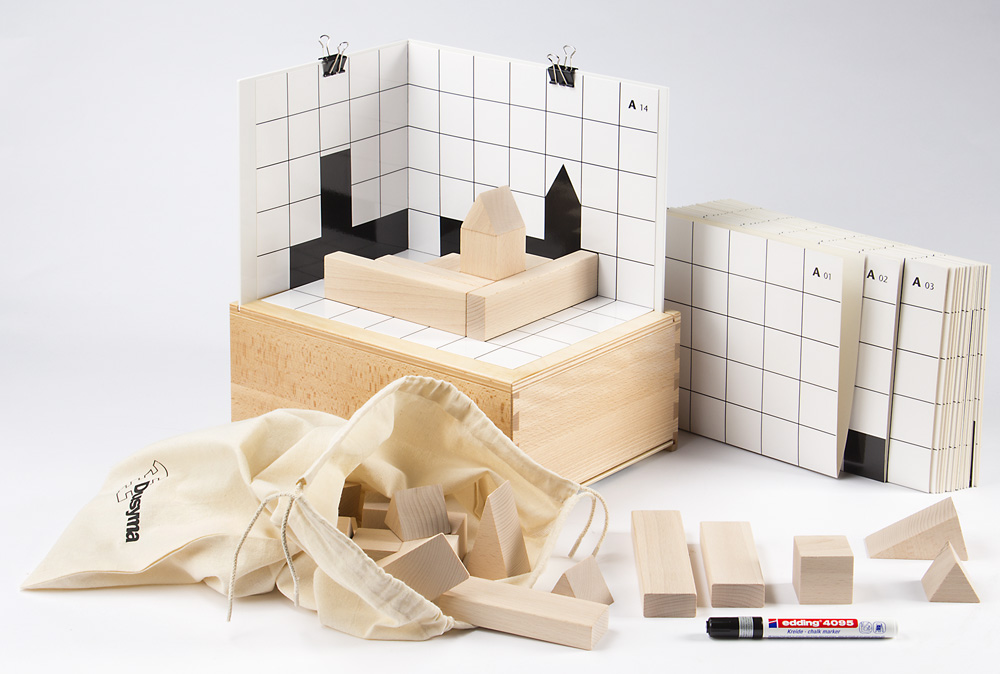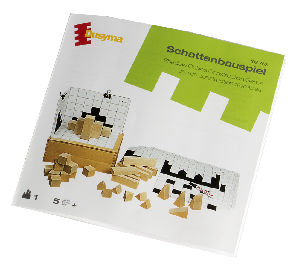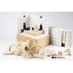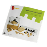 Съдържание / материали / размери: 20 кубчета (дължина на страната 4 см), 4 дълги правоъгълни блокчета, 4 къси правоъгълни блокчета, 6 равностранни триъгълника, 4 равнобедрени триъгълника, 20 ламинирани карти с модели, 1 празна карта за създаване на собствен модел, 1 триещ се маркер, 2 пластмасови листа, 2 клипс щипки за закрепване на картите. Съхранява се в дървена кутия с плъзгащ се капак (31,5×23,5×12,5 см).