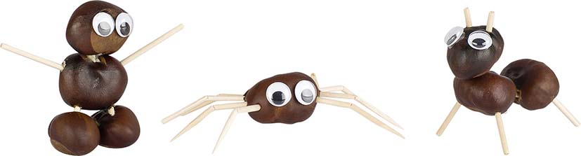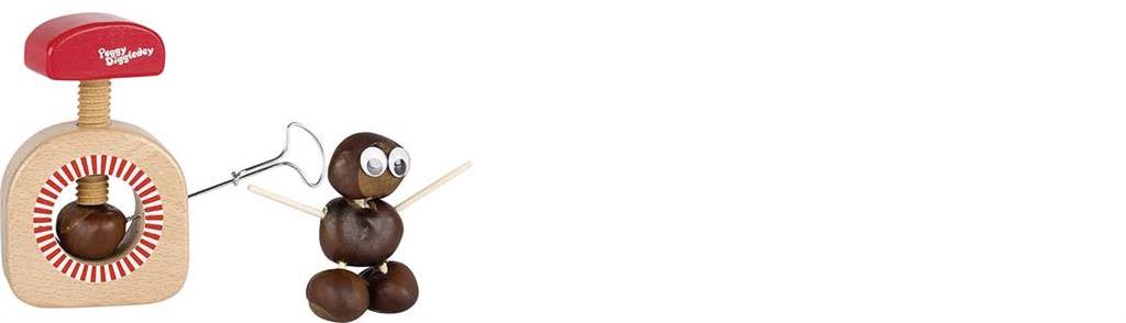 Практична стяга за кестени + ръчен свредел. Стегнете кестена и пробийте отвори в него. След това е готов за творчески декорации!