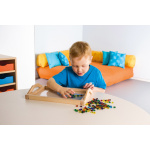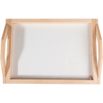 Дървена табла с дръжки и прозрачно дъно. Няколко табли могат да се поставят една върху друга. Подходяща за малки деца по време игра и творчески занимания. Съвместима с хартия формат А4. Не е устойчива на надрасквания.