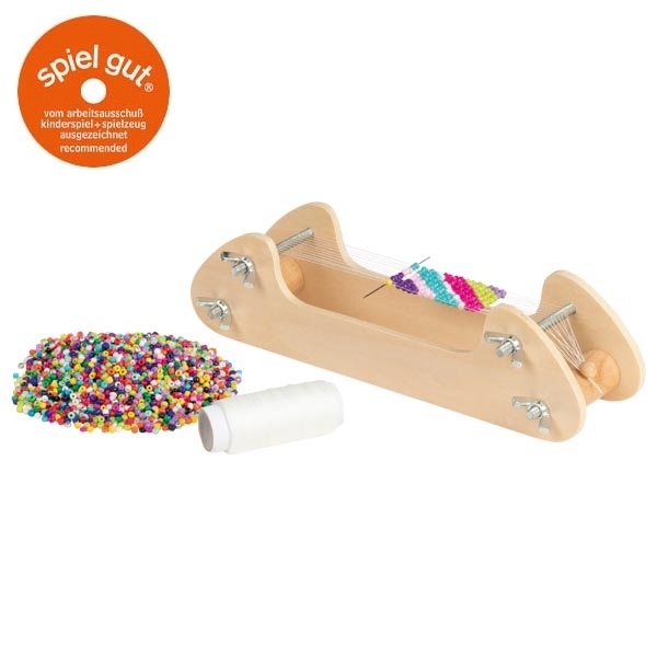 Тъкачен стан за мъниста позволява на децата да създават цветни гривни и декоративни аксесоари чрез тъкане с мъниста. Стабилната дървена конструкция осигурява удобна и сигурна работа, а включените мъниста дават възможност за разнообразни комбинации от цветове и шарки. Процесът на тъкане е едновременно забавен и образователен и ангажира децата за дълго време.