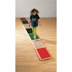 Разходете се върху тактилните платформи с боси крака, за да усетите разликата при допира на различни материали като изкуствена трева, шкурка, метал, плюш, камъчета, мъх, плексиглас. Рамка от масивна букова дървесина с удобни ръкохватки. Платформите могат да се подреждат една върху друга върху модул на колелца за по-лесно съхранение. Съдържа 7 различни тактилни платформи.