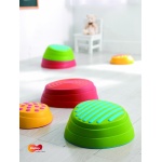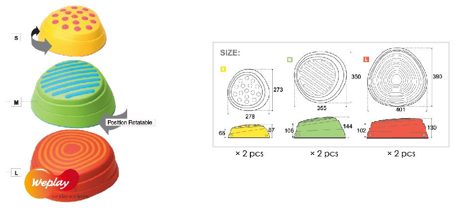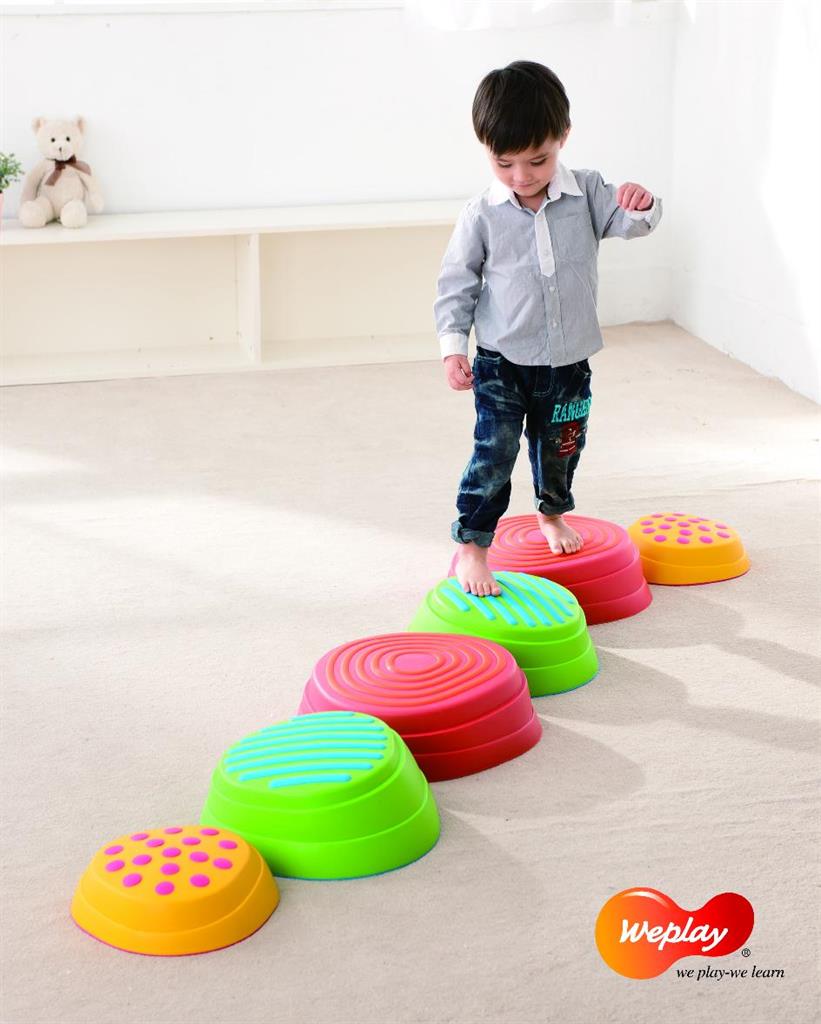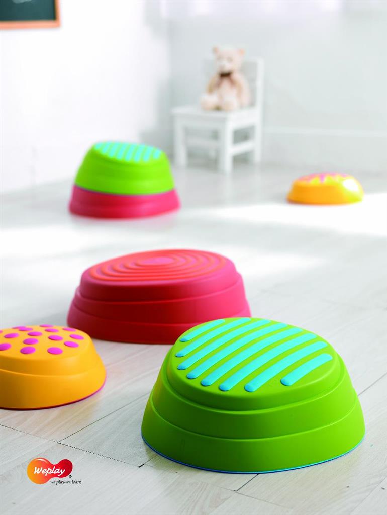 Предложения за игра: Децата могат да стоят върху тях сигурно и стабилно. Може да се подредят по различни начини. Целта е децата да запазят баланс, стоейки върху или прескачайки между отделните ‘камъни’. Платформите могат да се подреждат една върху друга, като това определя и степента на трудност.