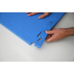 Обезопасителна настилка татами. Доставя се с 2 бр. странични завършващи ленти. Няколко плочи могат да се подредят заедно на принципа на пъзела. Лесни за монтаж и поддръжка. Размери: 100х100х2,5 см Материал: EVA (90 кг/куб.м) Произход: Германия