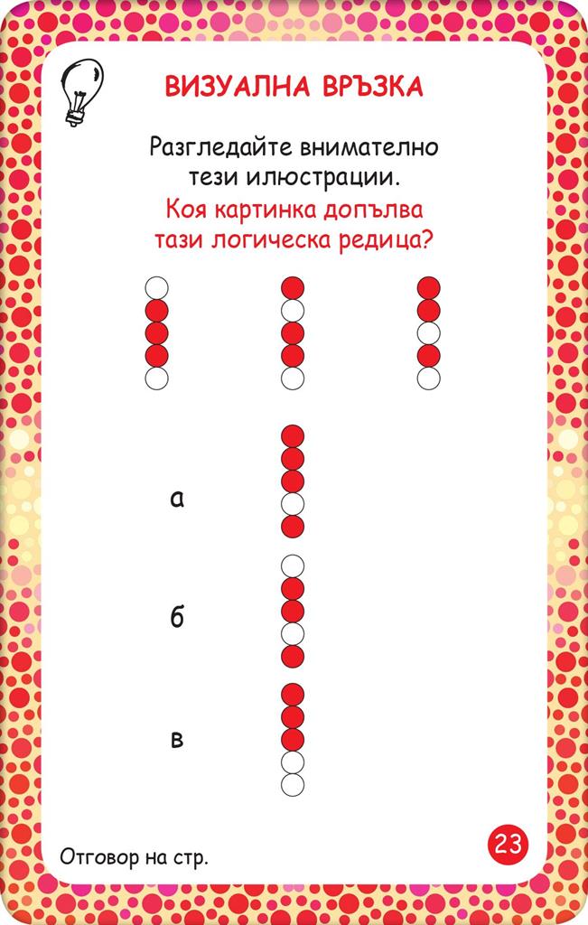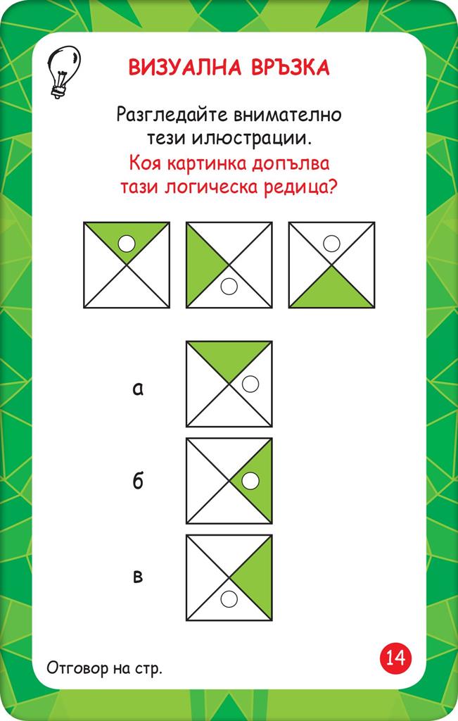 Проверете своя IQ с тези логически загадки. Картите включват задачи с танграм, домино, анаграми и много други. Главоблъсканиците ще предизвикат концентрацията, въображението и съобразителността ви.