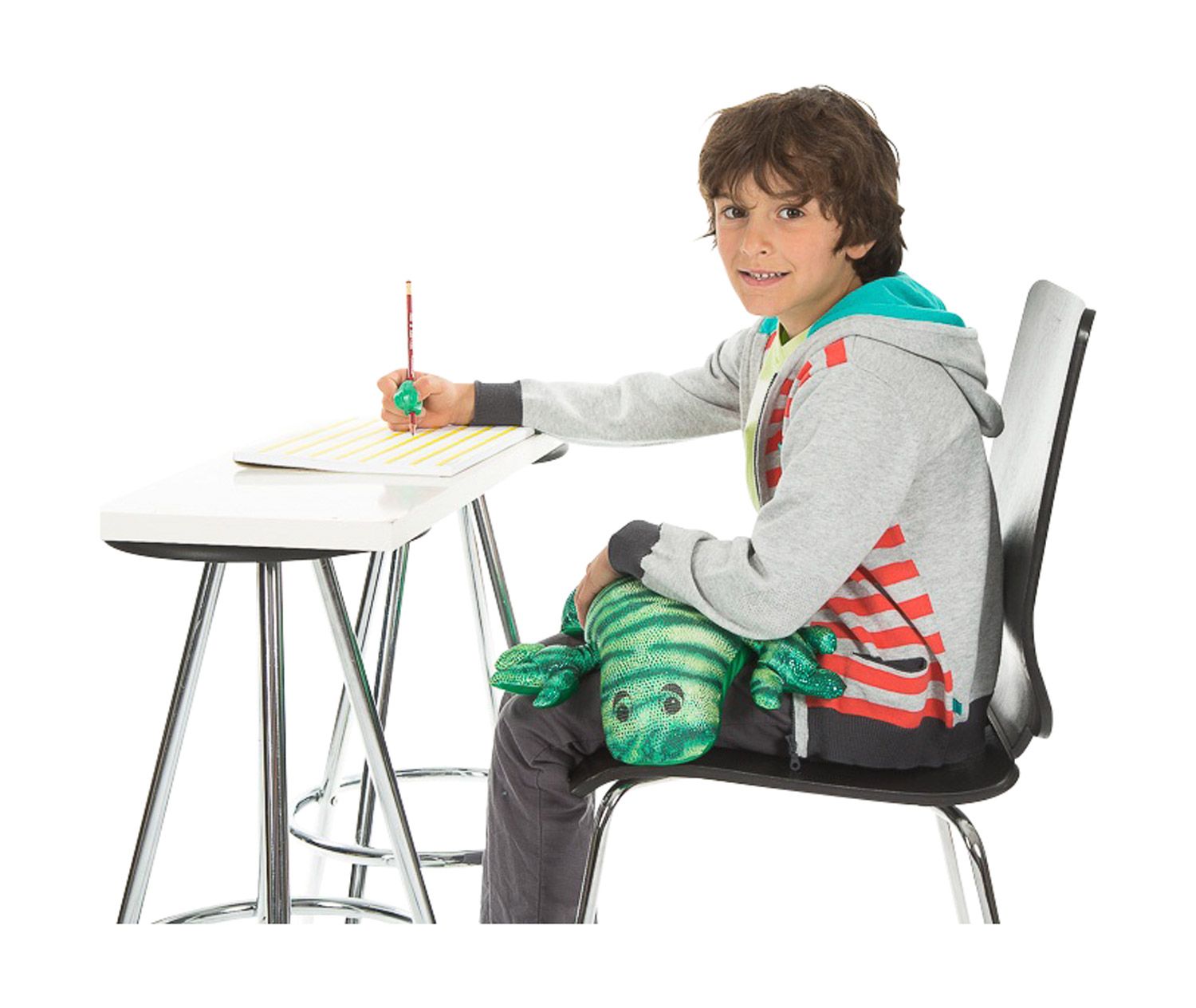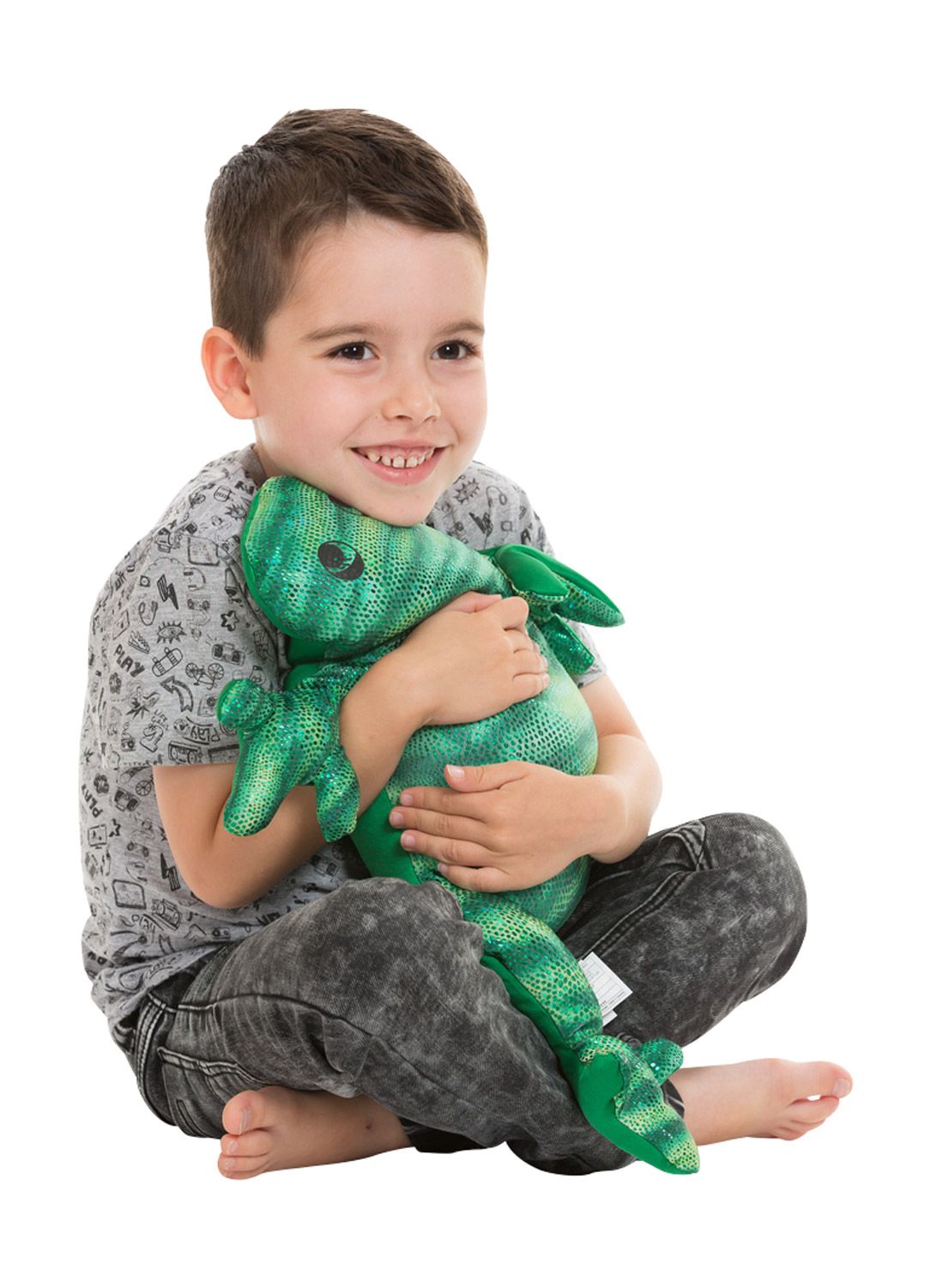 Тежка играчка гущер. Помага на децата с проприоцептивен сензорен дефицит да се успокоят, да се концентрират върху поставена задача или да заспят. Играчката осигурява подкрепа и сигурност.