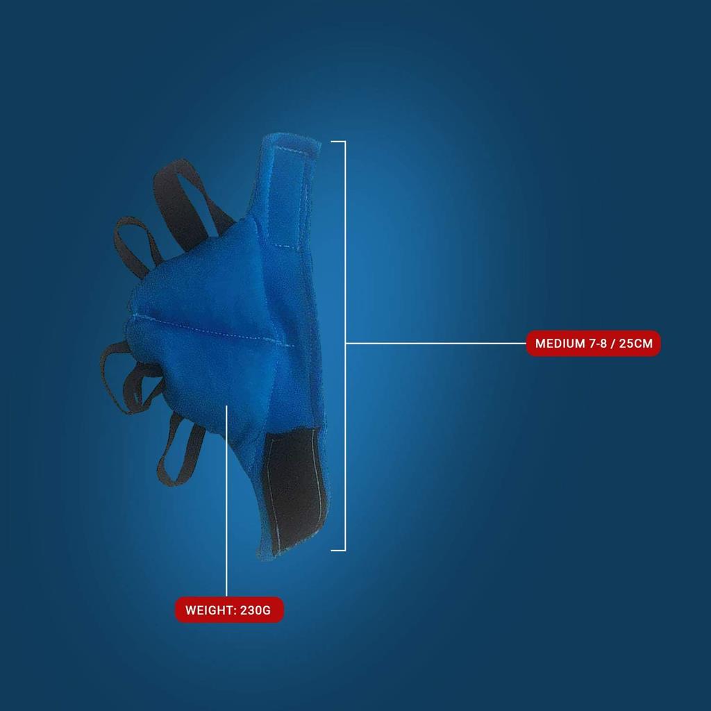 Тежката ръкавица намира широко приложение във физиотерапията и ерготерапията. Тя стимулира проприоцептивното усещане (наричано от терапевтите „чувството за безопасност“) и допринася за повишаване на кинестетичното осъзнаване: осъзнаване на позицията и движението на частите на тялото чрез сетивни органи (проприорецептори) в мускулите и ставите. Продуктът демонстрира особена ефективност при хора с тремор и е безценен помощник при необходимост от укрепващи дейности, тъй като подобрява уменията за писане на ръка, боравене с ножица и връзване на възли при деца и възрастни с нарушения в проприоцепцията. Продуктът представлява торбичка с тежест, която ляга върху горната част на дланта. Дизайнът осигурява максимална гъвкавост на пръстите и мобилност на китката. Закопчаване с велкро. Подходяща за лява и за дясна ръка.