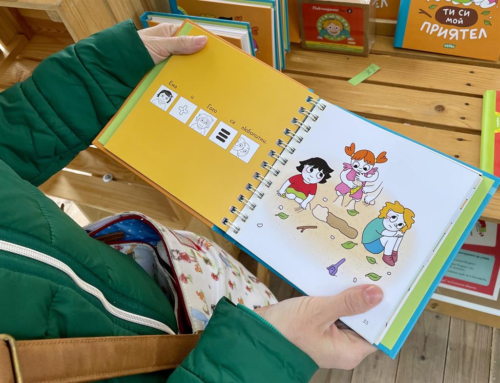 Използването на пиктограми и семпли илюстрации в книгата стимулира и подкрепя децата да четат и разказват самостоятелно.