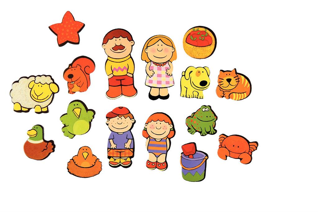 16 магнитни фигури – 4 човечета, 3 предмета и 9 животни