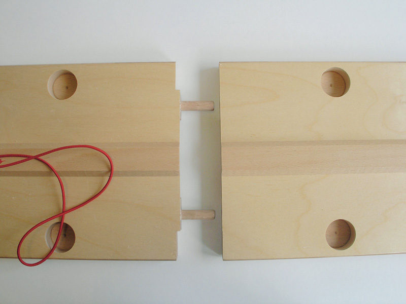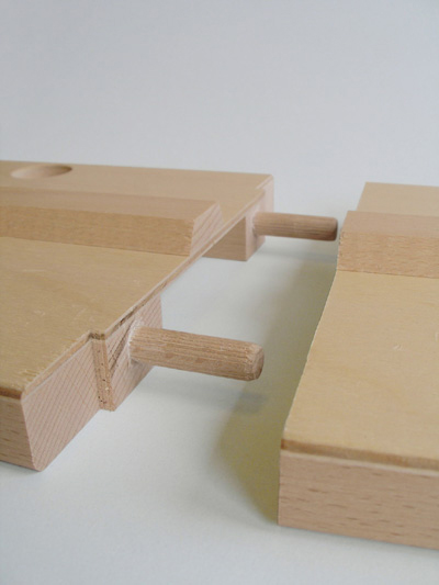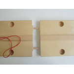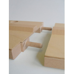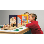 Съдържание / материали / размери: Вагончето и релсите са изработени от бук и бреза с лаково покритие. Размер на релсите: 100×20 см. Основната плоча се състои от две части. 16 дървени блокчета в различни форми и размери. 7 различни по форма арки с височина 26 см