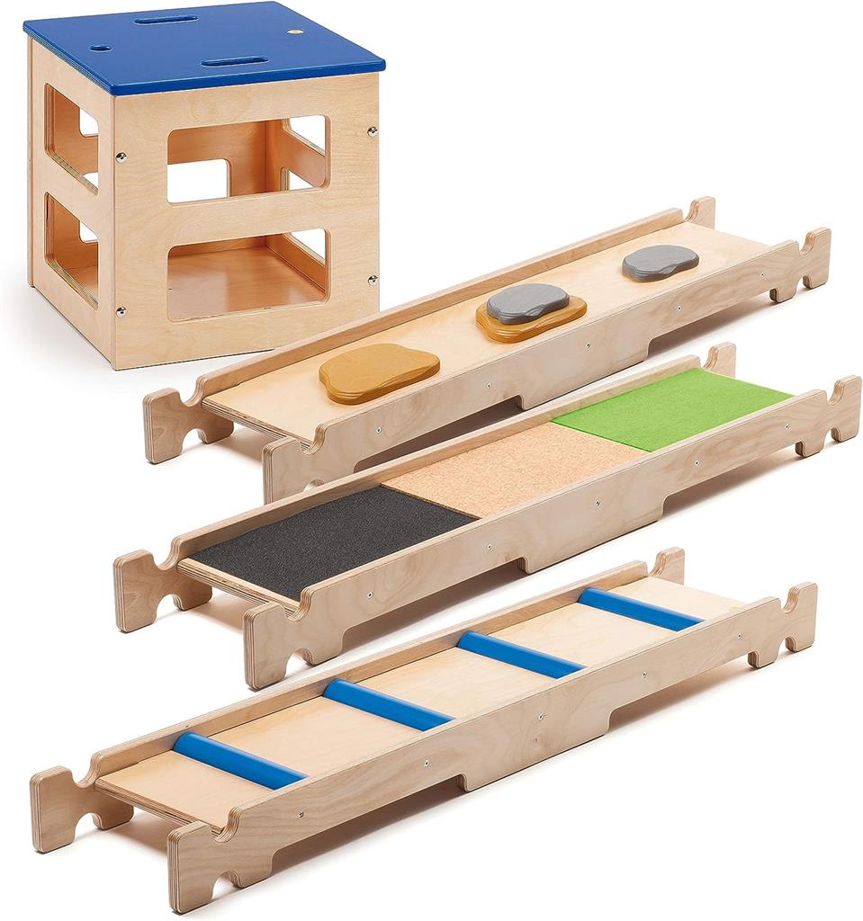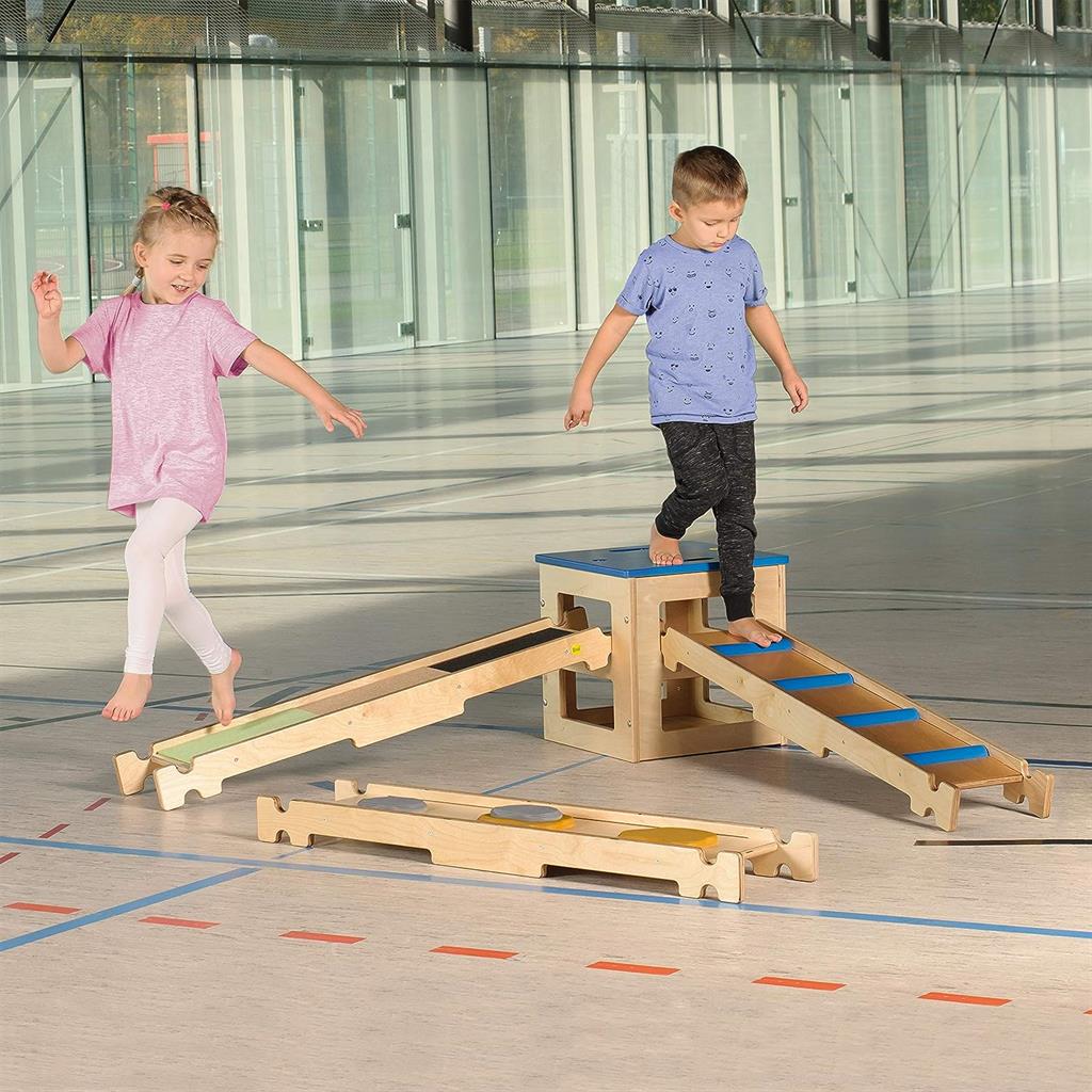 Комплект съоръжения за игра, спорт и терапия. Бързо и лесно изграждане на трасе от сензорни и балансиращи пътеки.