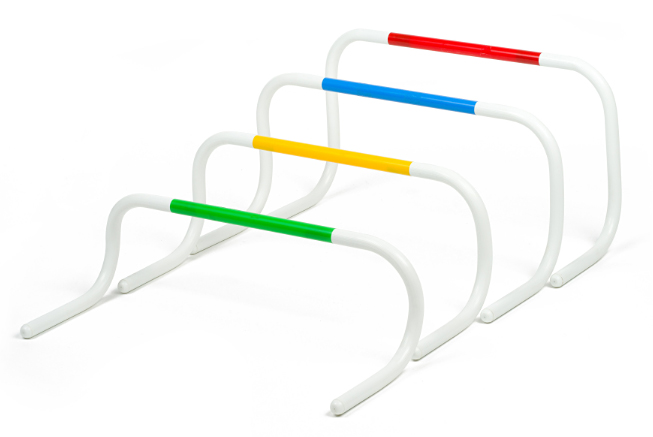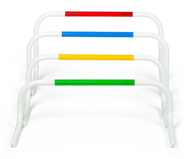 Комплект от 4 броя мини тренировъчни препятствия с 4 различни височини – 20, 25, 30, 35 см. Ширина – 60 см. Идеални за клубни и училищни спортове. Ако препятствието бъде съборено при прескачане, то ще се изправи отново. Може да се използва на открито и закрито.