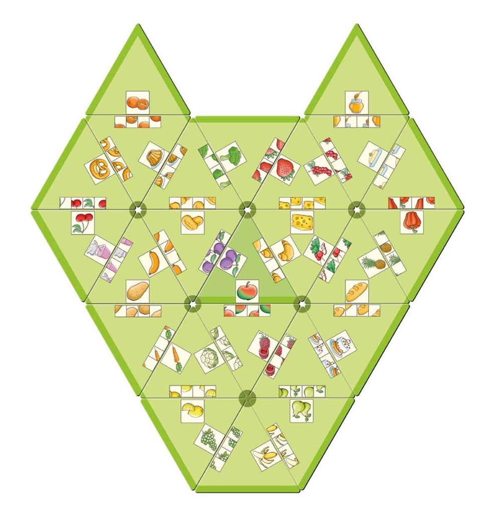 Играта насърчава децата да бъдат по-наблюдателни. Играе се по правилата на доминото. Разликата е, че трябва да внимават и трите страни на триъгълните плочки да съвпадат. Играта е със заложен „контрол на грешката”.