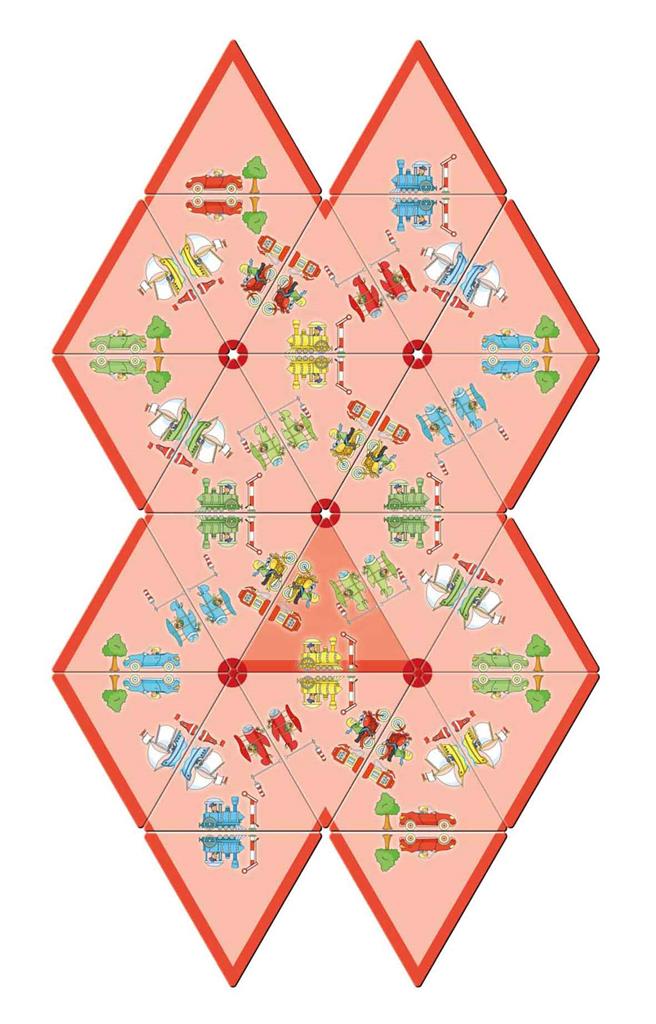 Играта насърчава децата да бъдат по-наблюдателни. Играе се по правилата на доминото. Разликата е, че трябва да внимават и трите страни на триъгълните плочки да съвпадат. Играта е със заложен „контрол на грешката”.