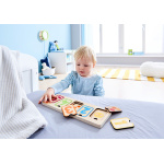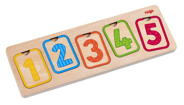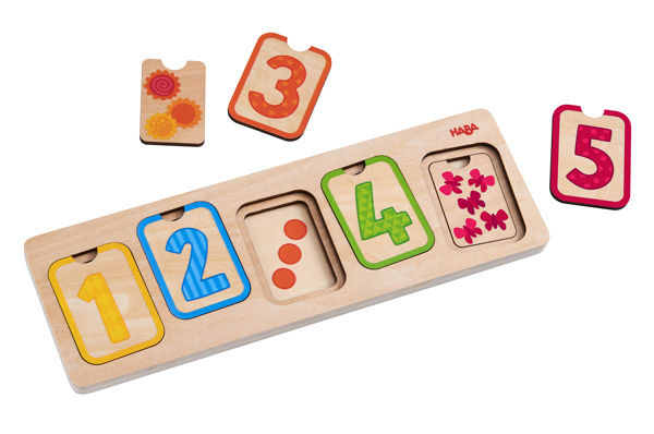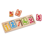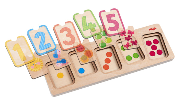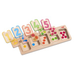 Трислоен образователен пъзел. Децата трябва да елементите на пъзела по цвят, количество и цифра. По този начин се учат да сортират, да разпознават цифрите и да броят под форма на игра.