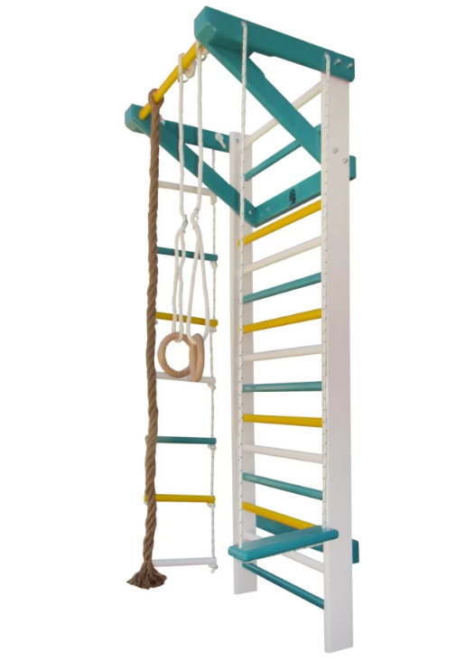Шведска стена за гимнастика, боядисана с цветна боя на водна основа.