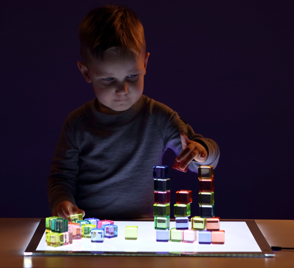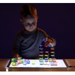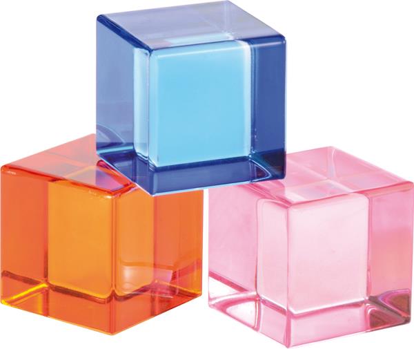 Цветни полупрозрачни акрилни кубчета за игра със заоблени ъгли. Изключително приятни на допир. Могат да се използват в свободна игра, като строителни блокчета или когато децата учат на имената на цветовете. Използвайте кубчетата в комбинация със светещ панел, за да постигнете пълния ефект на ярките цветове. Разширете забавлението още повече, като добавите към играта нашите други полупрозрачни цветни комплекти от акрил.