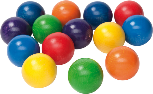 Съдържание / материали / размери: 14 дървени топки в 7 цвята, Ø 5 см