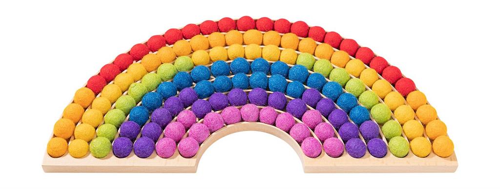 Цветни филцови топчета – комплект за декорация. Подходящи за използване с Дървена табла за сортиране и декориране „Дъга“ (553448 – поръчва се отделно).