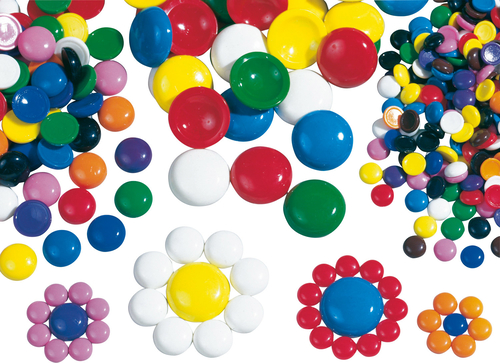 Кръглите камъчета са изработени от висококачествена пластмаса в 10 възхитителни цвята.