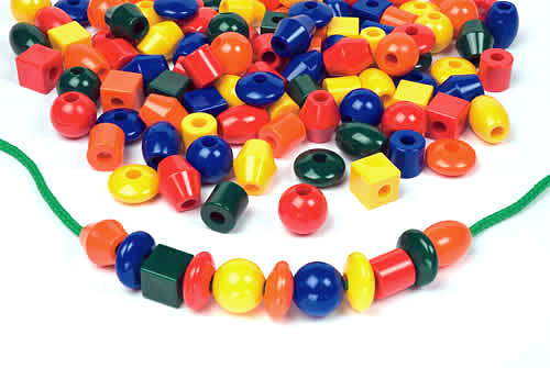 Съдържание / материали: прибл. 245 бр. големи мъниста в пет атрактивни цвята и 7 различни форми, изработени от пластмаса + синтетичен шнур.