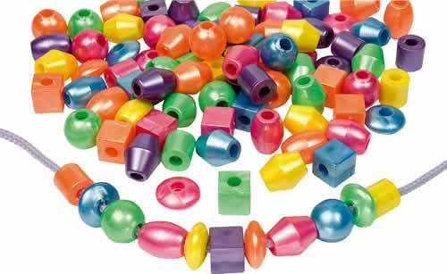 Опаковка с около 90 бр. мъниста в различни форми и цветове, с големи дупки за нанизване.