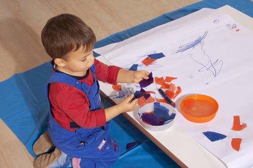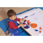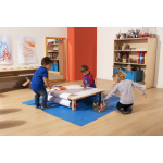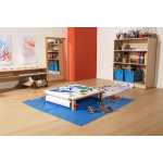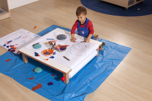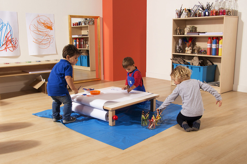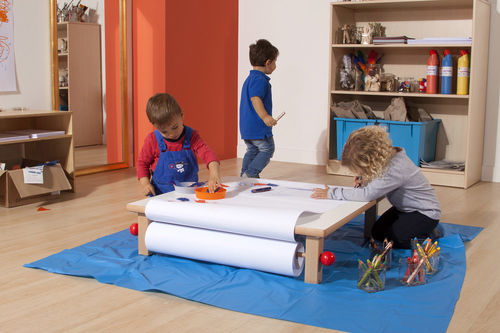 По-малките деца обичат да работят на пода. Творческата маса предлага на децата оптималната височина за драскане, рисуване и експериментиране, докато лежат, приклякват или коленичат. Освен това нивото й пречи на други деца да преминават през творбите им. Ролката с хартия отстрани улеснява работата, тъй като материалът е буквално „на една ръка разстояние“ и е готов за употреба. Ролката с хартия не е включена и може да се поръча отделно (512499).