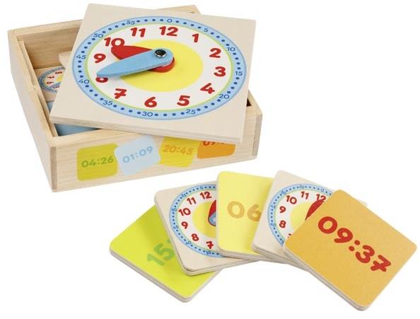 Учебен часовник за изучаване на времето аналогово и дигитално. В дървена кутия.