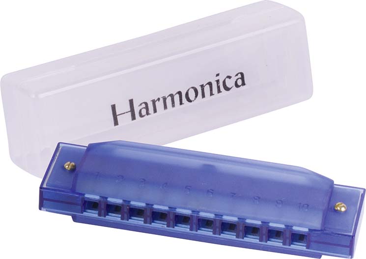Детска устна хармоника в пластмасова кутия, 10 тона.