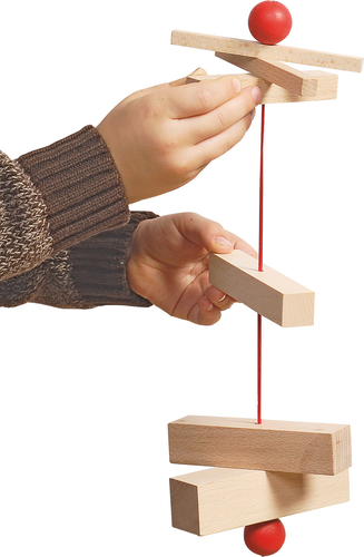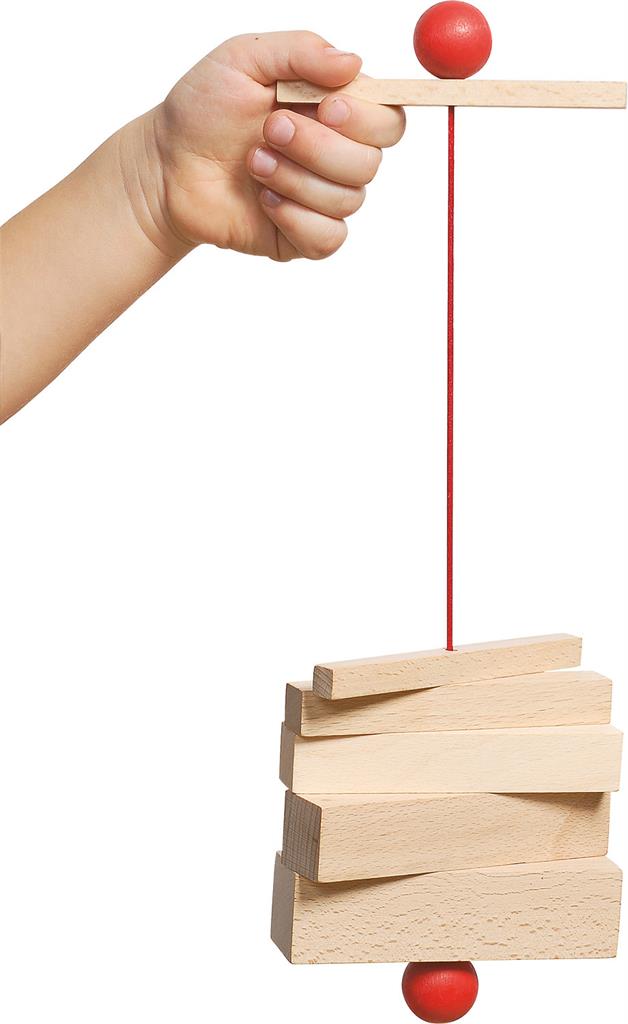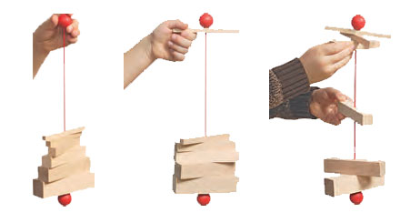 Предложения за игра: Забавна игра за стифиране, която изисква играчът да придвижва блокчетата едно по едно и да ги подрежда едно върху друго, без да падне някое от купчината. Играчът започва с преместването на първото блокче до горния край на шнура. После продължава да придвижва нагоре други блокчета от долния край, като винаги държи здраво последното в купчината, за да не я преобърне.