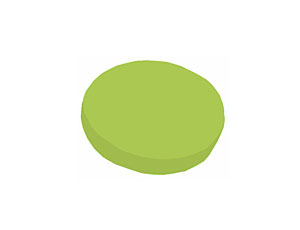 Възглавничка за сядане на пода. Пълнеж – полиуретанова пяна, калъф – изкуствена кожа. Размери: Ø 30 см, дебелина 5 см Цвят: зелен