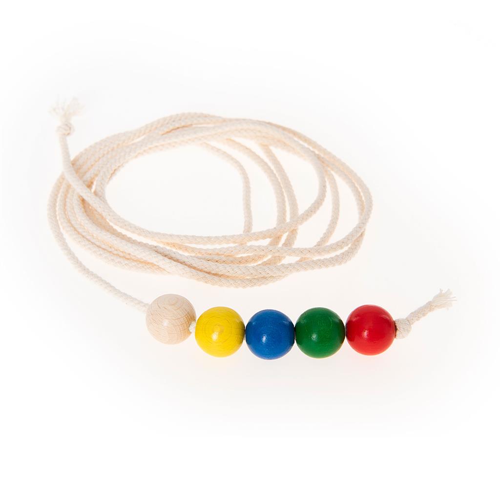 Топчета: 5 дървени топчета, всяко с диаметър 20 мм, цветове: червено, жълто, зелено, синьо и дървесен