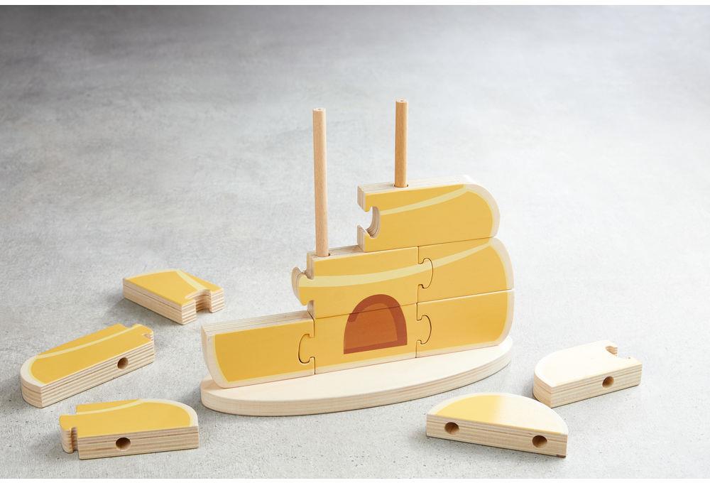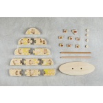 Съдържание: 11 елемента пъзел, 12 фигури, 2 дървени шиша, основа