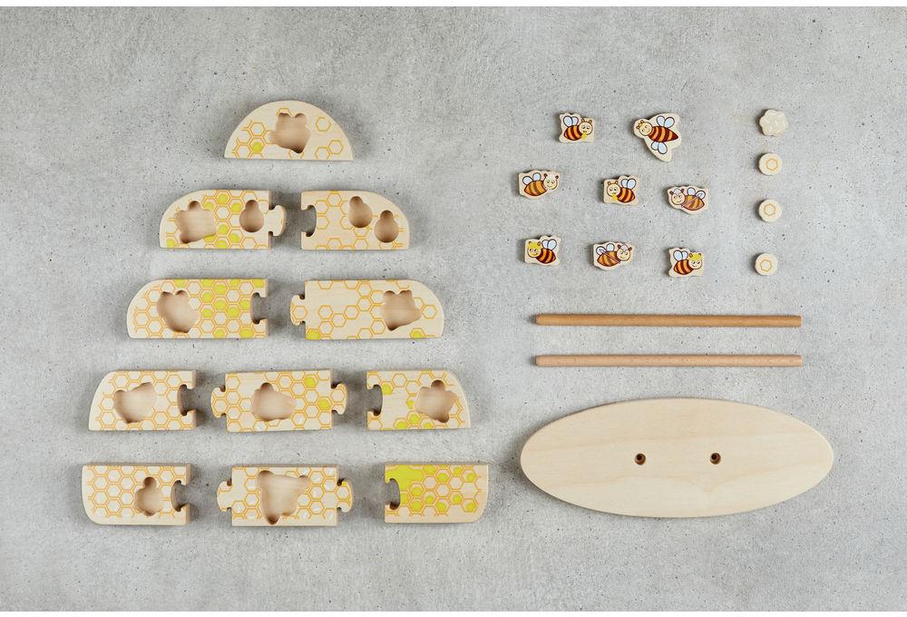 За да се построи триизмерен кошер, 11 двустранно отпечатани дървени парчета пъзел трябва да бъдат правилно сглобени и поставени върху дървените шишове на основата. Предната част на завършения пъзел показва външната част на кошера, а задната – вътрешната. Има 12 отвора в кошера, в които трябва да бъдат поставени правилните дървени фигури.