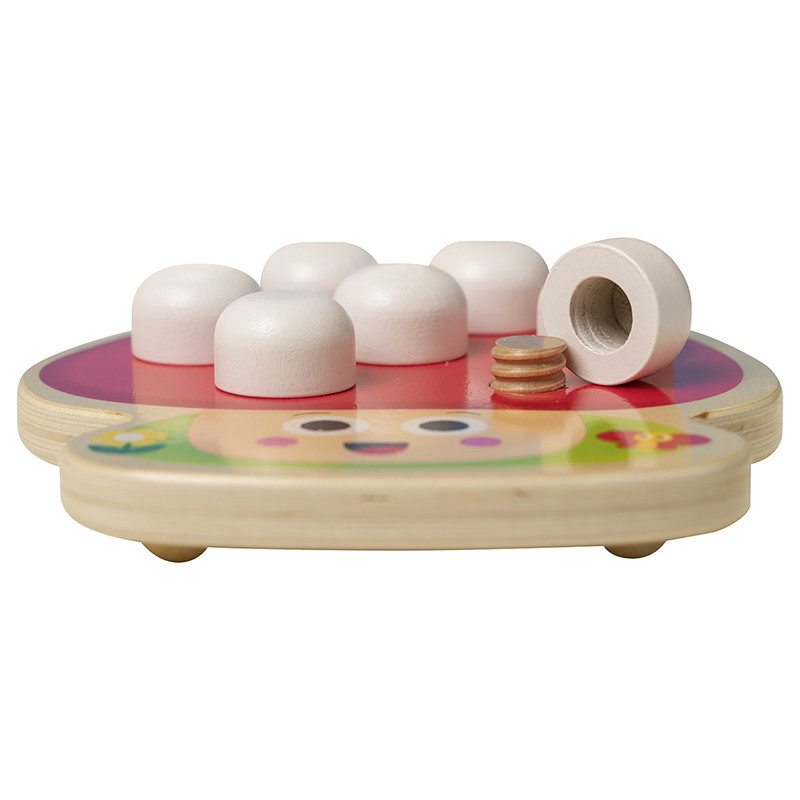 Винтова гъбка е очарователна дървена игра, която развива фината моторика и координацията око-ръка чрез завиване и развиване на големи, удобни за хващане капачета. Детето тренира захвата, прецизността и контрола на движението, като същевременно се забавлява с усмихнатата гъбка.