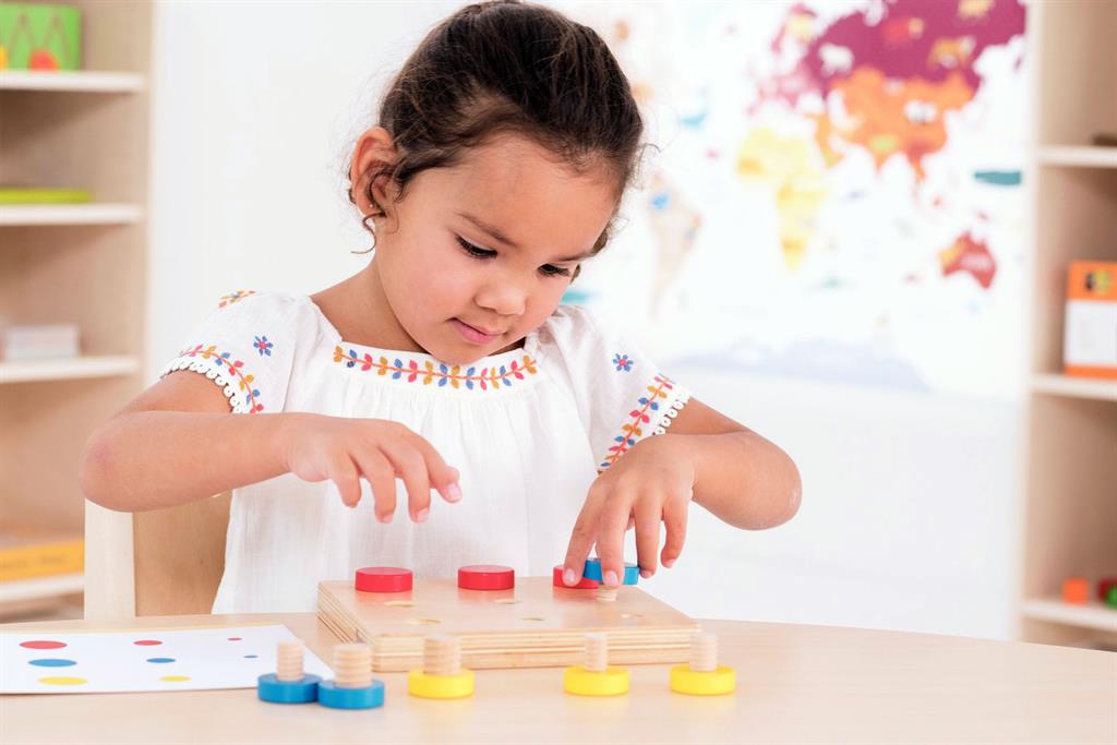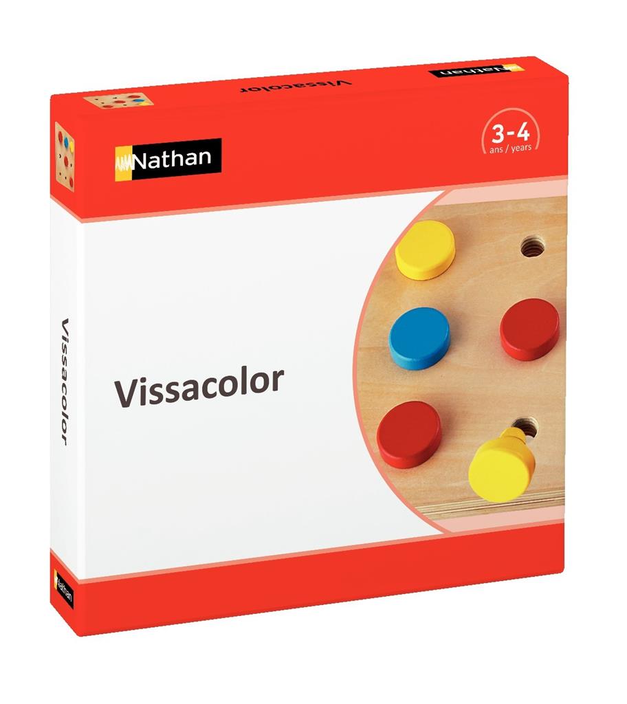 Образователната игра Vissacolor стимулира фината моторика, координацията око–ръка и логическото мислене чрез забавна дейност с винтове. Детето трябва да завинтва и развинтва цветните елементи, следвайки модела от показаните карти. Играта развива и умения за разпознаване на цветове, размери и пространствено разположение.