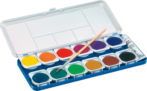 Метална кутия с 12 цвята водни боички + 1 тубичка бяла темперна боя + четка за рисуване. Размери: 23х10 см Стойността на доставката не е включена в цената на артикулите. Повече информация ще намерите в раздел ‘Общи условия’.