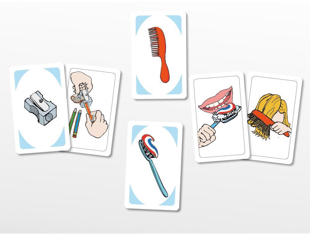 Разделете картите с действия и картите с обекти в две отделни тестета. Подредете картите с действия в кръг на масата с изображението нагоре. В средата поставете тестето с обектите. Играчите се редуват, като всеки тегли карта с обект и търси съответстваща карта с действие. Целта на играчите е да свържат правилно обектите с подходящите действия и да опишат ситуациите с изречения със „ЗА ДА“.