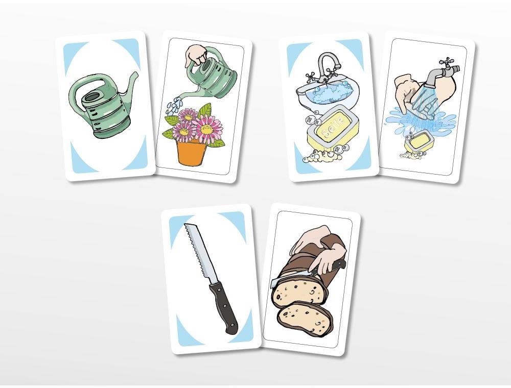 Забавна игра с карти, в която децата трябва да свържат обекта с неговото обичайно предназначение и да го опишат със сложно изречение със съюза „ЗА ДА“. Напр. Използвам лейката, за да поливам цветята.