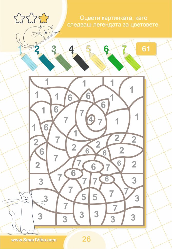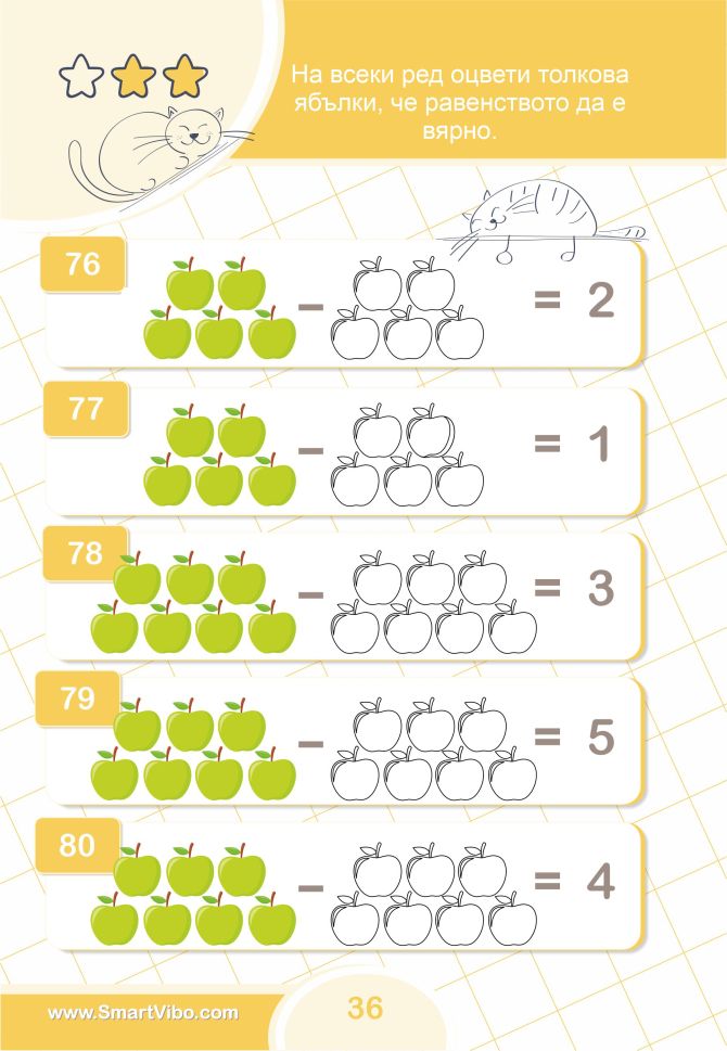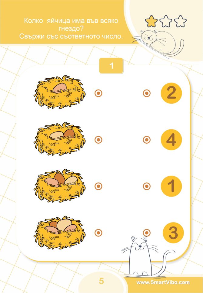 Чрез практични и достъпни примери малчуганите постепенно изграждат увереност в работата с числата, учат се да разсъждават последователно и да достигат самостоятелно до правилното решение. Книжката подпомага изграждането на стабилна основа за бъдещо обучение по математика.
