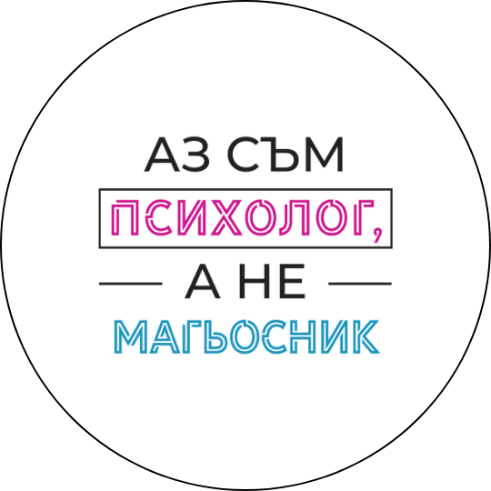 Значка със забавен текст: „Аз съм психолог, а не магьосник“.