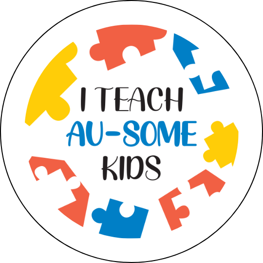 Значка със забавен текст: „I Teach Au-Some Kids“. Със своя креативен дизайн и шеговито послание тази значка ще бъде освежаващ аксесоар за още по-добро настроение! Материали: ламинирана лицева част, гръб с безопасна игла Размери: диаметър 42 мм