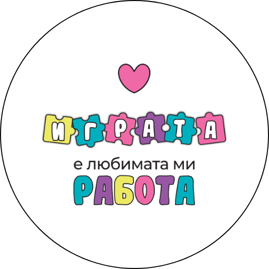Значка със забавен текст: „Играта е любимата ми работа“.