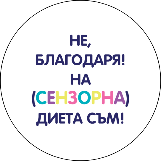 Значка със забавен текст: „Не, благодаря! На сензорна диета съм!“.