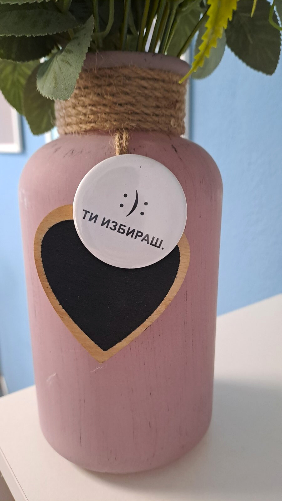 Значка със забавен текст: „Ти избираш“. Със своя креативен дизайн и шеговито послание тази значка ще бъде освежаващ аксесоар за още по-добро настроение! Материали: ламинирана лицева част, гръб с безопасна игла Размери: диаметър 42 мм