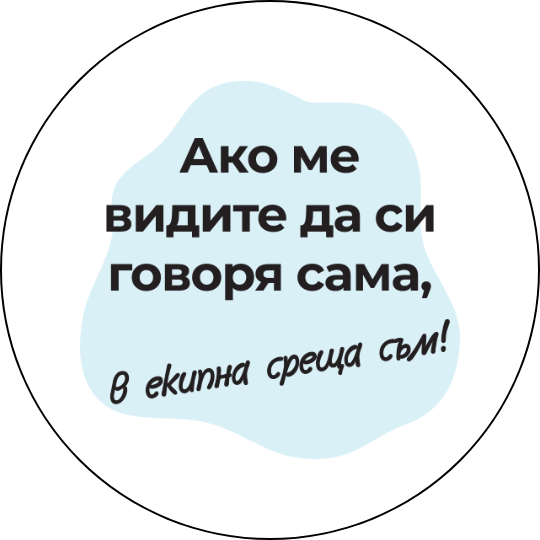 Значка със забавен текст: „Ако ме видите да си говоря сама, в екипна среща съм“.