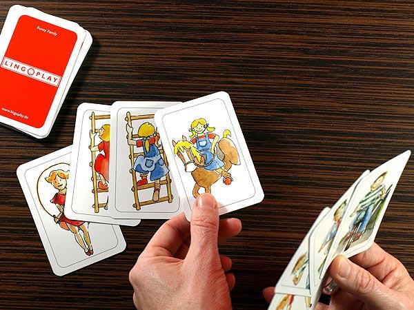 Как се играе:Всеки участник получава по определен брой карти, а останалите се подреждат на купчина върху масата. Играта започва най-малкият участник, като поставя отворена една от своите карти. След това играчите се редуват, като поставят по една от своите карти до последната отворена. Всяка нова карта трябва да показва или същия човек, или друг човек, но извършващ същата дейност като тази на последната отворена карта. При поставянето на карта, играчът трябва да я опише с цяло изречение. Ако играч няма подходяща карта, с която да играе, той трябва да изтегли една от тестето на масата. Играта печели този, който пръв свърши картите си.