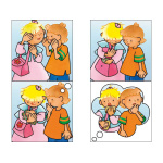 Съдържание: 11 картинни истории с по 5-7 картинки и 1 палитра с персонажи, общо 74 карти, формат 9 х 9 см, инструкции.
