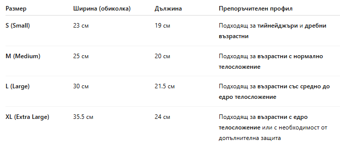 Размер М: 25 x 20 см (за възрастни с нормално телосложение)