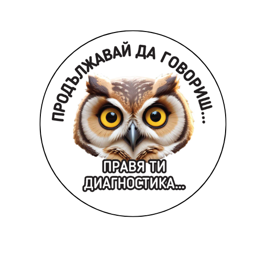 Значка за терапевт със забавен надпис „Продължавай да говориш… Правя ти диагностика…“